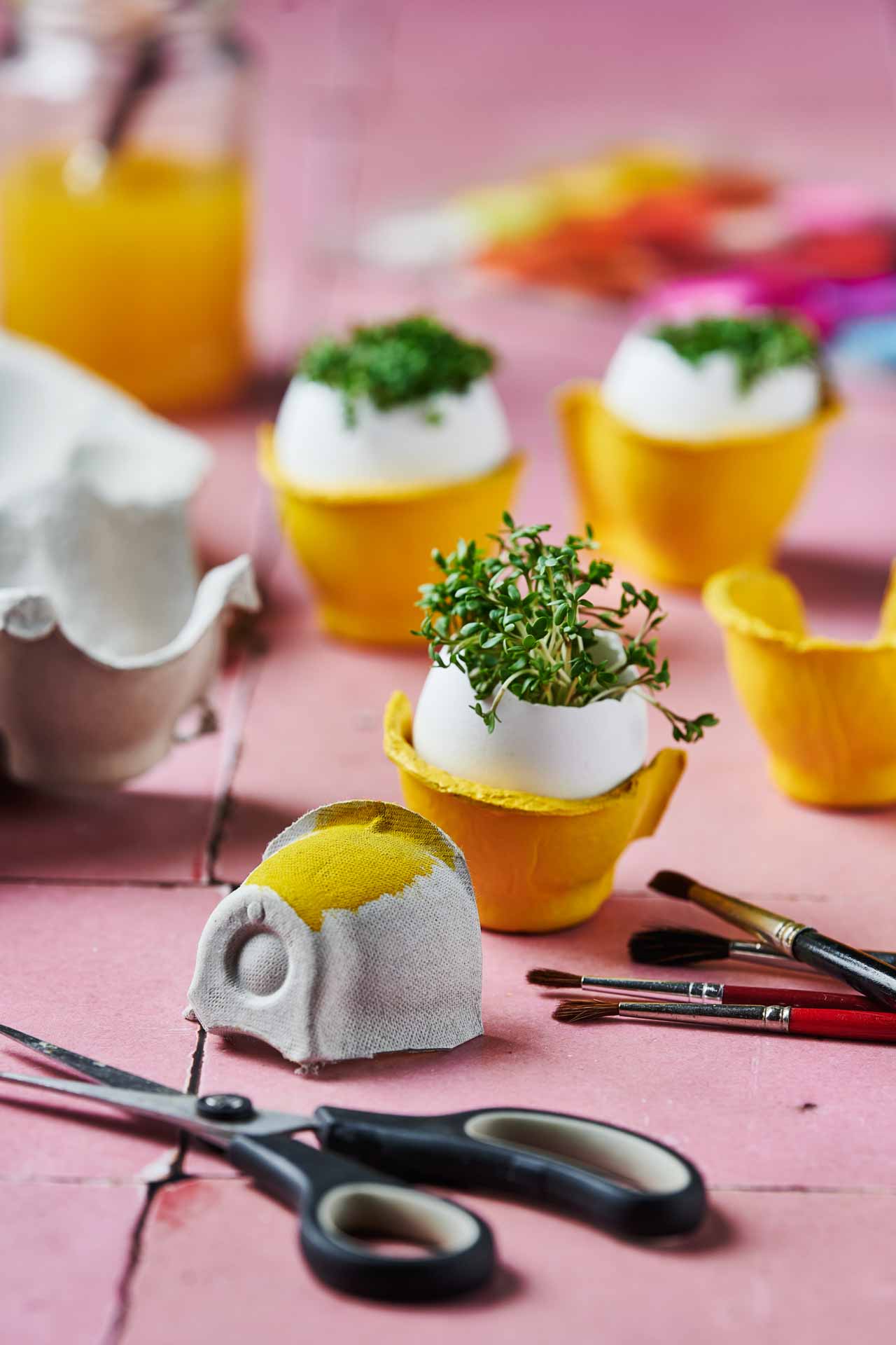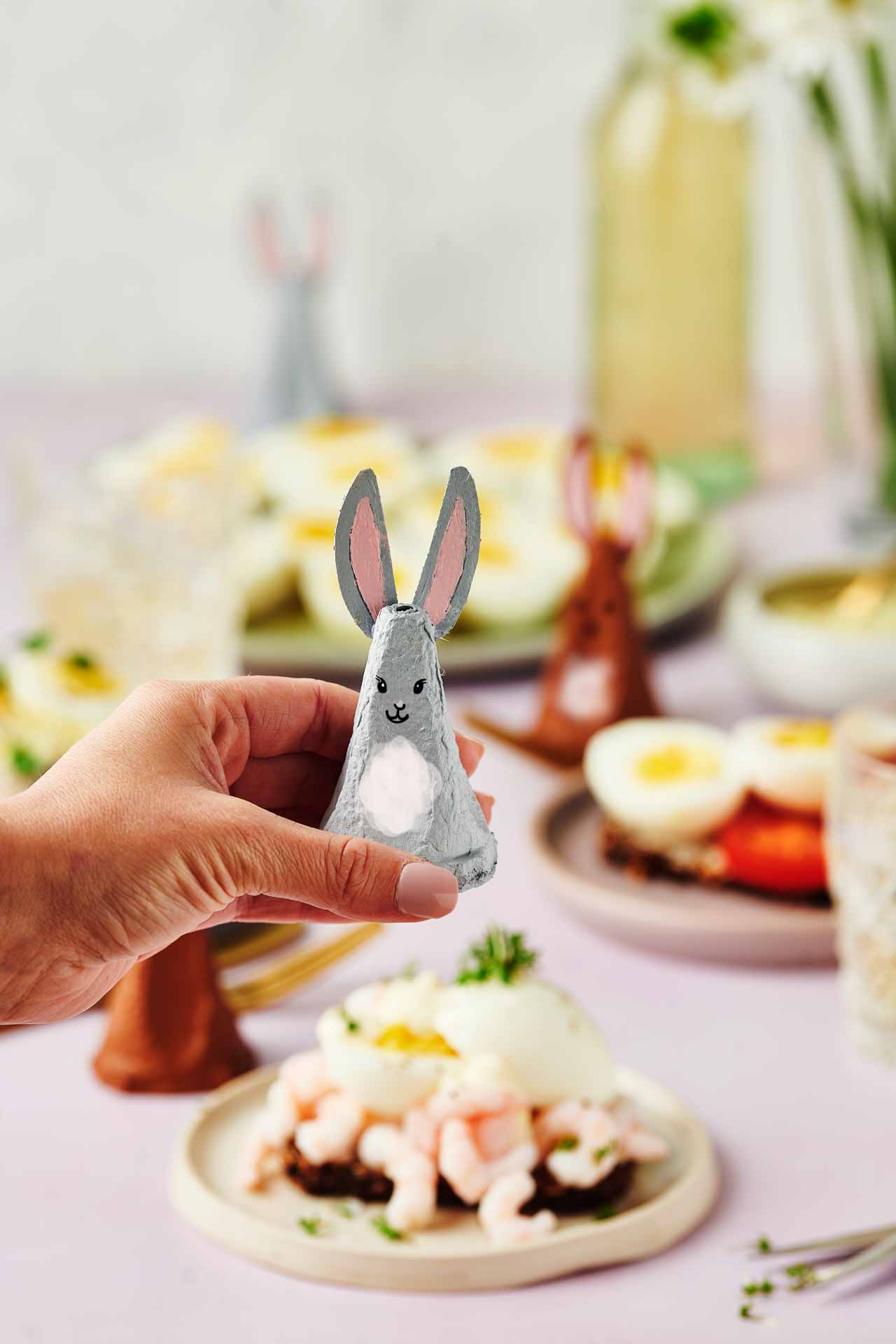 Også vores æggebakker har en genanvendelig profil. De er nemlig skabt ud af genanvendt papir og pap. Og du kan faktisk give dem nyt liv med saks, limstift og lidt maling her op til påske. Fx kan du forvandle bakkerne til en påskehare eller påskekylling til at pynte dit påskefrokostbord op med.